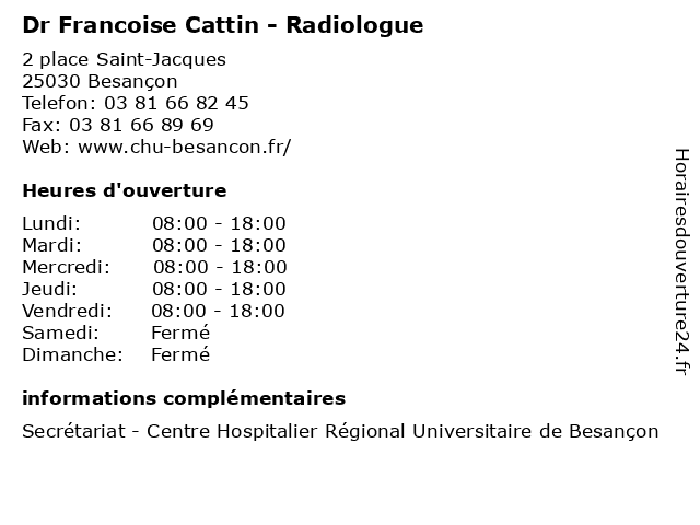 Termes de recherche pour Dr Francoise Cattin - Radiologue:de, besancon, radiologie, centre, regional, francoise, hospitalier, universitaire, imagerie, dr, diagnostique, thérapeutique, radiologue, cattin |