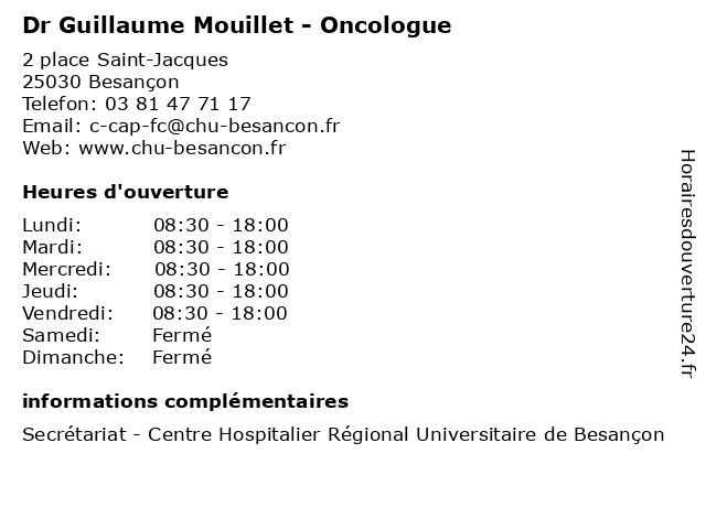 Termes de recherche pour Dr Guillaume Mouillet - Oncologue:de, besancon, guillaume, centre, regional, hospitalier, universitaire, oncologie, dr, mouillet, chimiothérapie, oncologue, hémopathie, immunothérapie |