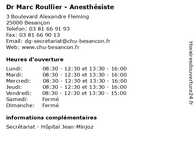 | Lundi | 08:30-12:30 et 13:30-16:00 |
