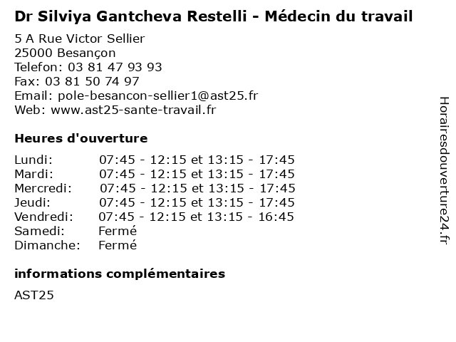 1 Dr Josette Baverel-Douge - Médecin du travail (Distance: 0,00 km) 5 A Rue Victor Sellier, 25000 Besançon baverel, consultation, docteur, douge, dr, du, josette, med, médecin, traitement, travail 2 Dr Agnès Beaumont-Renevier - Médecin du travail (Distance: 0,00 km) 5 A Rue Victor Sellier, 25000 Besançon agnes, agnès, beaumont, consultation, docteur, dr, du, med, médecin, renevier, traitement, travail 3 Dr Anne Bonnot - Médecin du travail (Distance: 0,00 km) 5 A Rue Victor Sellier, 25000 Besançon anne, bonnot, consultation, docteur, dr, du, med, médecin, traitement, travail 4 Dr Valérie Ducret - Médecin du travail (Distance: 0,00 km) 5 A Rue Victor Sellier, 25000 Besançon consultation, docteur, dr, du, ducret, med, médecin, traitement, travail, valerie, valérie 5 Dr Martine Erbs - Médecin du travail (Distance: 0,00 km) 5 A Rue Victor Sellier, 25000 Besançon consultation, docteur, dr, du, erbs, martine, med, médecin, traitement, travail 6 Dr Christine Henriot - Médecin du travail (Distance: 0,00 km) 5 A Rue Victor Sellier, 25000 Besançon christine, consultation, docteur, dr, du, henriot, med, médecin, traitement, travail |