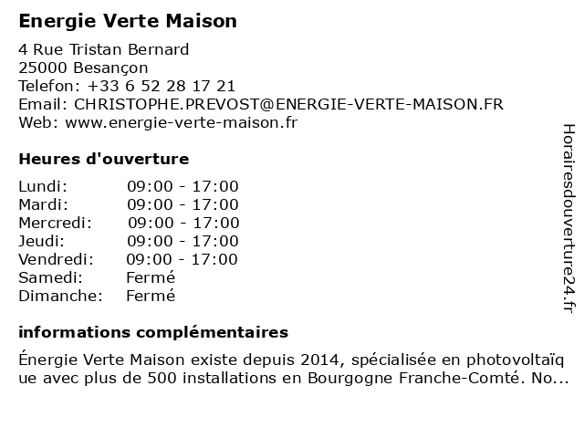 1 La Fée Verte (Distance: 0,75 km) 20 Rue de Belfort, 25000 Besançon bar, bistro, bistrot, brasserie, café, fée, la, restaurant, restauration, verte 2 Micro Crèche La Souris Verte Montferrand-le-Château (Distance: 12,05 km) 1 Rue du Chenassard, 25320 Montferrand-le-Château caregivers houses, child care, château, crèche, family home, home care, kindergartens, la, le, micro, micro-nurseries, montferrand, parental home, souris, verte 3 Camping Verte Rive - Réception Matin (Distance: 12,59 km) 16 rue du Pont, 70190 Cromary accueil, camping, loisirs, matin, rive, réception, tourisme, vacances, verte 4 Camping Verte Rive - Réception Après-midi (Distance: 12,59 km) 16 rue du Pont, 70190 Cromary accueil, après, aprés, camping, loisirs, midi, rive, réception, tourisme, vacances, verte 5 ERDF ARE Alsace Franche-Comté ( Infos jours EJP ) (Distance: 1,12 km) 57 Rue Bersot, 25000 Besançon agences, alsace, are, comté, ejp, electricite, energie, erdf, franche, infos, jours, services 6 ERDF ARE Alsace Franche-Comté ( Payer une facture ou déclarer une auto-relève ) (Distance: 1,12 km) 57 Rue Bersot, 25000 Besançon agences, alsace, are, auto, comté, déclarer, electricite, energie, erdf, facture, franche, ou, payer, relève, services, une |