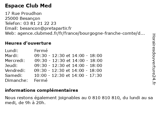 | Mardi | 09:30-12:30 et 14:00-18:00 |