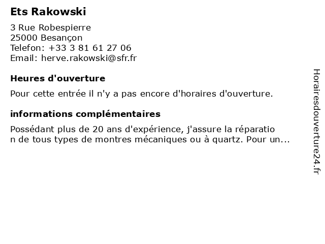 Termes de recherche pour Ets Rakowski:ets, rakowski |