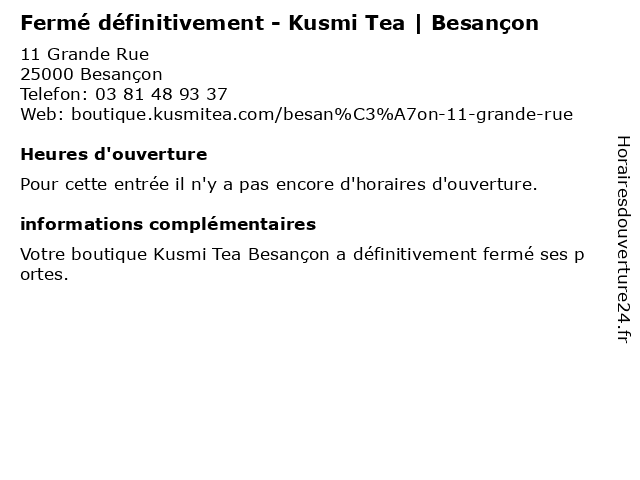 | Appeler Fermé définitivement - Kusmi Tea | Besançon | |