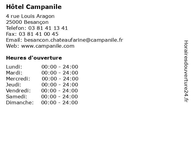 1 Campanile Restaurant (Distance: 0,00 km) 4 rue Louis Aragon, 25000 Besancon campagnile, campanile, hotel, restaurant 2 Campanile - Hôtel (Distance: 0,00 km) 4 rue Louis Aragon, 25000 Besançon bar, campanile, hotel, hôtel, restaurant, service 3 Campanile - Restaurant (Distance: 0,00 km) 4 rue Louis Aragon, 25000 Besançon campagnile, campanile, hotel, restaurant 4 Campanile Besançon Ouest Châteaufarine (Distance: 0,03 km) 4 Rue Louis Aragon, 25000 Besançon besançon, campanile, châteaufarine, hôtel, ouest, restaurant. 5 Hôtel All Suites Besançon (Distance: 5,75 km) 17 Avenue des Montboucons, 25000 Besançon all, bar, besançon, chambres, hotel, hôtel, restaurant, service, suites 6 Citotel Hôtel Granvelle (Distance: 6,53 km) 13 Rue Lecourbe, 25000 Besançon bar, citotel, granvelle, hotel, hôtel, restaurant, service |