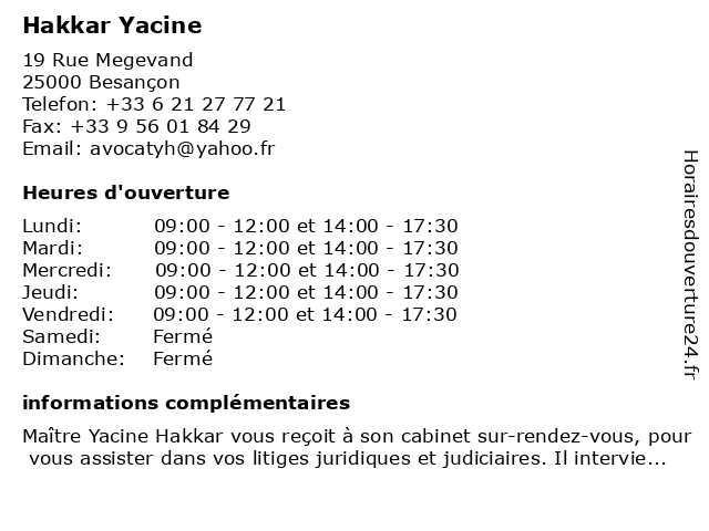 | Lundi | 09:00-12:00 et 14:00-17:30 |