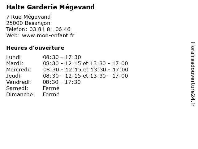 1 Restaurant Mégevand (Distance: 0,35 km) 36 rue Mégevand, 25000 Besançon cafétéria, campus, mégevand, restaurant, universitaire 2 Halte Garderie La Grette (Distance: 1,84 km) 31 Rue Brulard, 25000 Besançon caregivers houses, child care, family home, garderie, grette, halte, home care, kindergartens, la, micro-nurseries, parental home 3 Halte garderie Saint-Claude (Distance: 2,06 km) 6 Rue Jean Wyrsch, 25000 Besançon caregivers houses, child care, claude, family home, garderie, halte, home care, kindergartens, micro-nurseries, parental home, saint 4 Halte garderie Saint Ferjeux (Distance: 2,22 km) 16 Chemin de la Pelouse, 25000 Besançon caregivers houses, child care, family home, ferjeux, garderie, halte, home care, kindergartens, micro-nurseries, parental home, saint 5 Halte garderie Clairs Soleils / Bregille (Distance: 2,78 km) 15 Place des Lumières, 25000 Besançon bregille, caregivers houses, child care, clairs, family home, garderie, halte, home care, kindergartens, micro-nurseries, parental home, soleils 6 Halte garderie Montrapon (Distance: 3,16 km) 7 Chemin de l'Epitaphe, 25000 Besançon caregivers houses, child care, family home, garderie, halte, home care, kindergartens, micro-nurseries, montrapon, parental home |