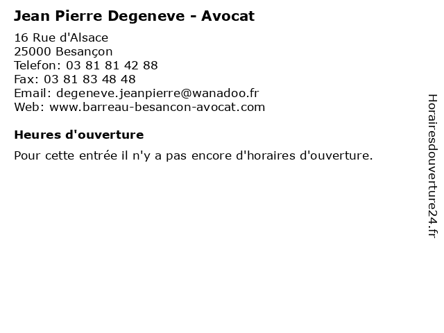 | Appeler Jean Pierre Degeneve - Avocat | |