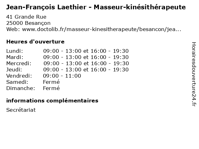 | Jeudi | 09:00-13:00 et 16:00-19:30 |