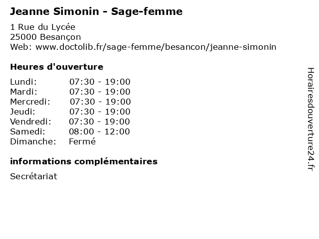 | Mercredi | 07:30-19:00 |