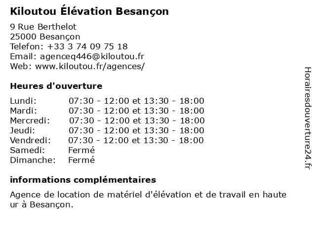 | Lundi | 07:30-12:00 et 13:30-18:00 |