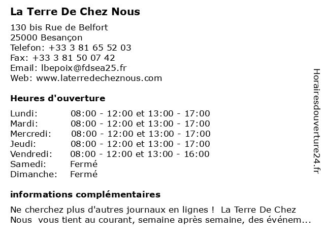 | Lundi | 08:00-12:00 et 13:00-17:00 |
