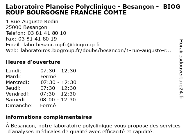 Termes de recherche pour Laboratoire Planoise Polyclinique - Besançon - BIOGROUP BOURGOGNE FRANCHE COMTE:besancon, comte, laboratoire, bourgogne, franche, polyclinique, planoise, biogroup, dépistages, laboratoire de diagnostic |