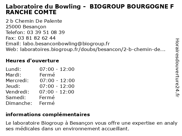 Termes de recherche pour Laboratoire du Bowling - BIOGROUP BOURGOGNE FRANCHE COMTE:du, comte, bowling, laboratoire, bourgogne, franche, biogroup, dépistages, laboratoire de diagnostic |