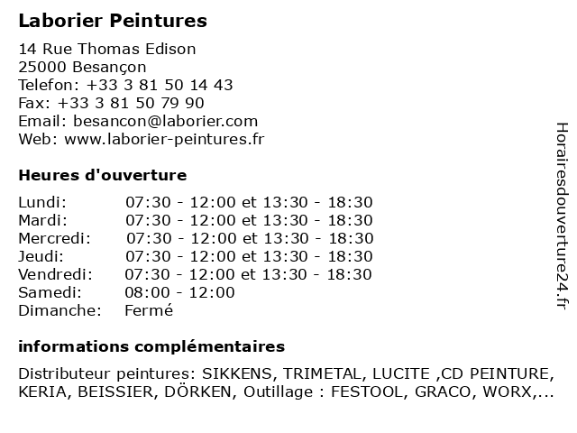 | Lundi | 07:30-12:00 et 13:30-18:30 |