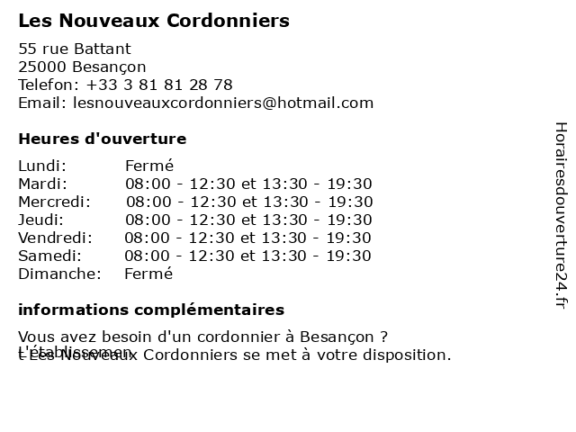 | Mardi | 08:00-12:30 et 13:30-19:30 |
