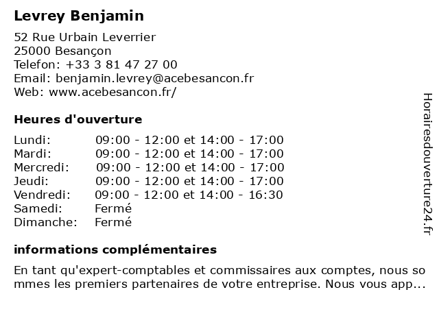 Lundi | 09:00-12:00 et 14:00-17:00 |