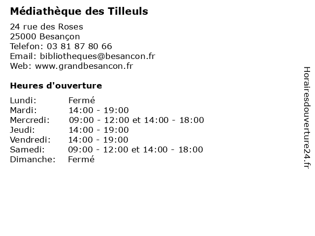 | Mercredi | 09:00-12:00 et 14:00-18:00 |