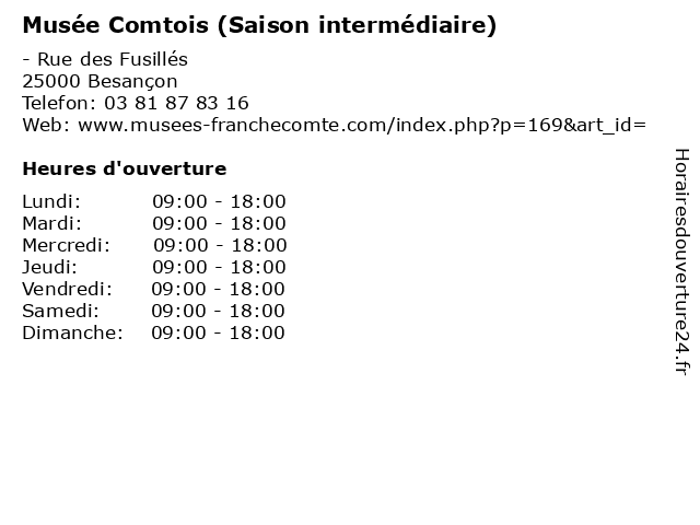 | Mercredi | 09:00-18:00 |