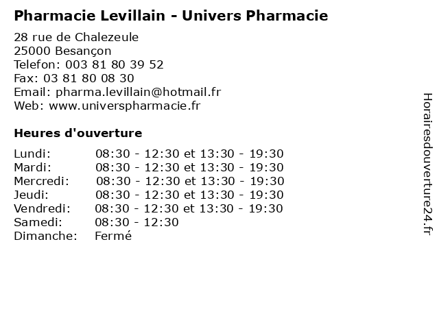 | Jeudi | 08:30-12:30 et 13:30-19:30 |