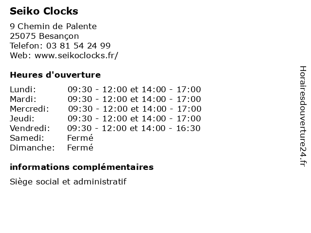 Lundi | 09:30-12:00 et 14:00-17:00 |