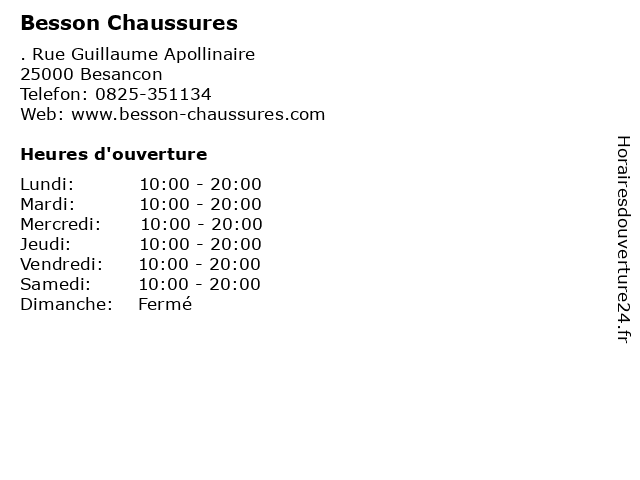 | Mercredi | 10:00-20:00 |