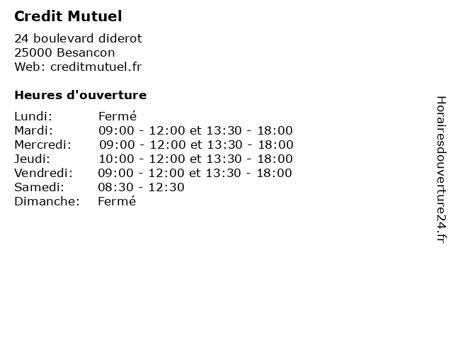 | Mardi | 09:00-12:00 et 13:30-18:00 |