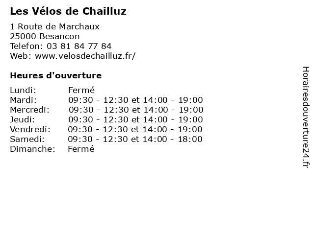| Mardi | 09:30-12:30 et 14:00-19:00 |
