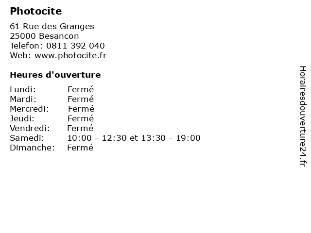 | Samedi | 10:00-12:30 et 13:30-19:00 |
