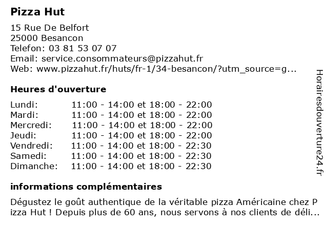| Mercredi | 11:00-14:00 et 18:00-22:00 |