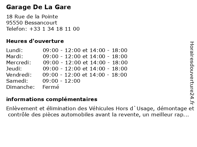 | Mercredi | 09:00-12:00 et 14:00-18:00 |