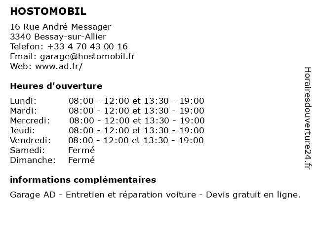 | Mercredi | 08:00-12:00 et 13:30-19:00 |