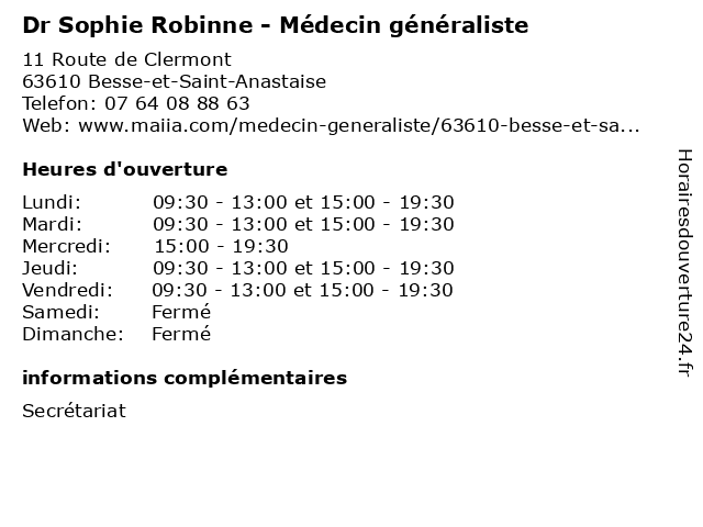 | Lundi | 09:30-13:00 et 15:00-19:30 |
