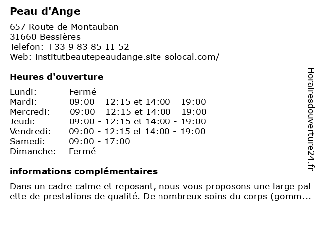 1 BOULANGERIE ANGE (Distance: 19,40 km) 3 Route de Bessières, 31240 L'Union ange, baguette, boulangerie, brioche, café, chocolat chaud, cookie, croissant, delices, donuts, livraison, pain, pain au chocolat, pains speciaux, petit dejeuner, pizzas, poke bowl, pâtisserie, salade, snacking, tarte 2 BOULANGERIE ANGE (Distance: 19,42 km) 145 Route de Paris, 31140 Saint-Alban ange, baguette, boulangerie, brioche, café, chocolat chaud, cookie, croissant, delices, donuts, livraison, pain, pain au chocolat, pains speciaux, petit dejeuner, pizzas, poke bowl, pâtisserie, salade, snacking, tarte 3 BOULANGERIE ANGE (Distance: 19,89 km) 19 Rue des Usines, 31150 Fenouillet ange, baguette, boulangerie, brioche, café, chocolat chaud, cookie, croissant, delices, donuts, livraison, pain, pain au chocolat, pains speciaux, petit dejeuner, pizzas, poke bowl, pâtisserie, salade, snacking, tarte 4 Château JOLIET Marie-Ange et Jérôme SORIANO (Distance: 20,18 km) 345 chemin de Caillol, 31620 Fronton ange, chateau, château, et, joliet, jérôme, marie, soriano, vignoble 5 Salsabil - Hammam et Spa (Distance: 21,13 km) 3 Rue de Viadailhan, 31130 Balma beauté, et, hammam, massage, peau, relax, salon, salsabil, sante, soins, spa 6 Crèche Plume D'Ange (Distance: 22,03 km) 38 Avenue de la Roseraie, 31500 Toulouse caregivers houses, child care, crèche, d'ange, family home, home care, kindergartens, micro-nurseries, parental home, plume |