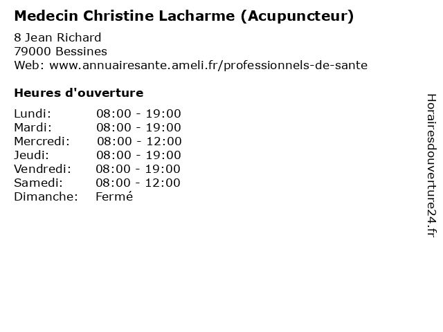 | Lundi | 08:00-19:00 |