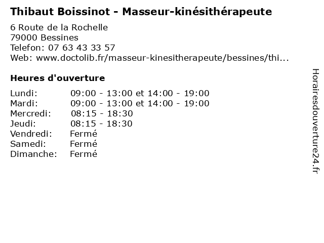 | Lundi | 09:00-13:00 et 14:00-19:00 |