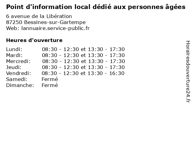 | Mardi | 08:30-12:30 et 13:30-17:30 |