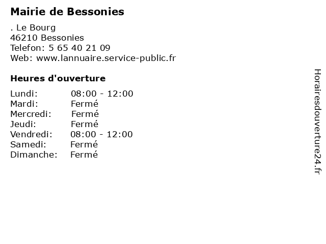Termes de recherche pour Mairie de Bessonies:de, administration, mairie, assoc public, bessonies |