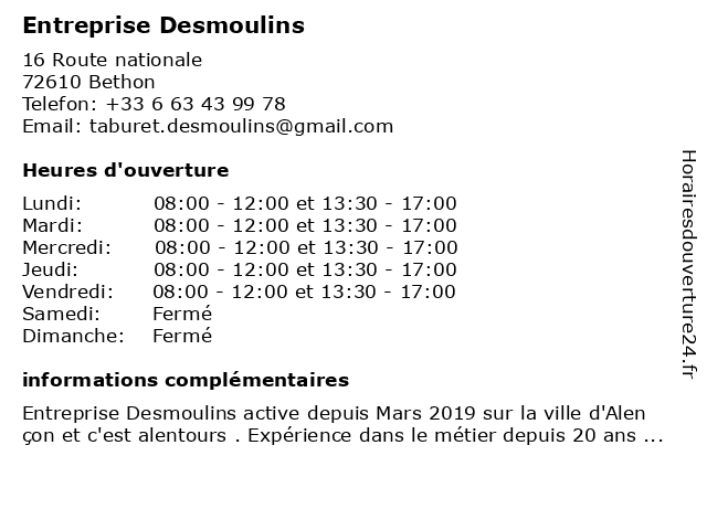 | Mardi | 08:00-12:00 et 13:30-17:00 |