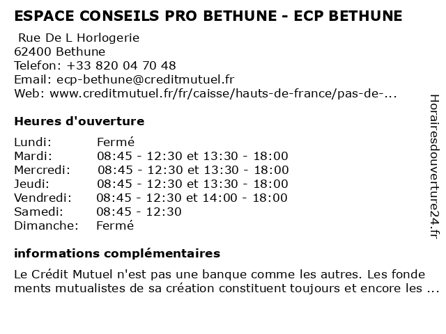 | Mardi | 08:45-12:30 et 13:30-18:00 |
