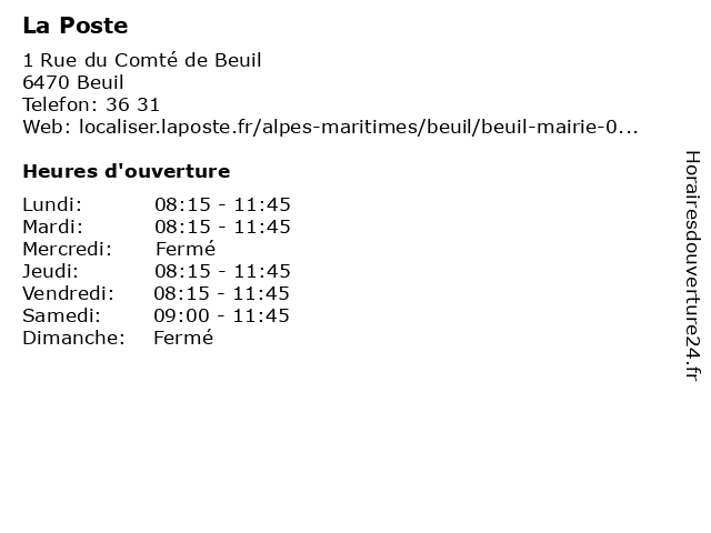 Horaires d'ouverture |