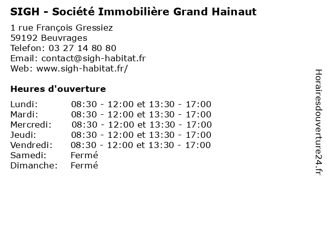 | Lundi | 08:30-12:00 et 13:30-17:00 |