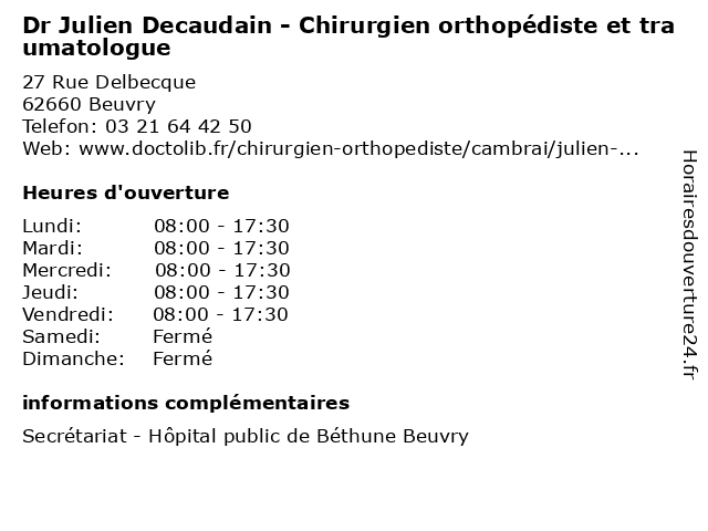 1 Dr Didier Baranski - Chirurgien orthopédiste et traumatologue (Distance: 0,00 km) 27 Rue Delbecque, 62660 Beuvry baranski, chirurgien, consultation, didier, docteur, dr, et, med, médecin, orthopédiste, traitement, traumatologue 2 Dr Ali Benkanoun - Chirurgien orthopédiste et traumatologue (Distance: 0,00 km) 27 Rue Delbecque, 62660 Beuvry ali, benkanoun, chirurgien, consultation, docteur, dr, et, med, médecin, orthopédiste, traitement, traumatologue 3 Dr Nicolas Chassignet - Chirurgien orthopédiste et traumatologue (Distance: 0,00 km) 27 Rue Delbecque, 62660 Beuvry chassignet, chirurgien, consultation, docteur, dr, et, med, médecin, nicolas, orthopédiste, traitement, traumatologue 4 Pr Jean-François Desrousseaux - Chirurgien orthopédiste et traumatologue (Distance: 0,00 km) 27 Rue Delbecque, 62660 Beuvry chirurgien, consultation, desrousseaux, docteur, et, françois, jean, med, médecin, orthopédiste, pr, traitement, traumatologue 5 Jean-Sébastien Wiel - Orthopédiste-orthésiste (Distance: 2,91 km) 4 Place du 73EME, 62400 Béthune jean, orthopedie, orthopédique, orthopédiste, orthésiste, sebastien, sébastien, trauma, traumatologie, traumatologique, wiel 6 Dr Massinissa Dehl - Chirurgien orthopédiste et traumatologue (Distance: 3,91 km) 100 Boulevard Emile Basly, 64200 Bethune chirurgien, dehl, dr, et, massinissa, orthopedie, orthopédique, orthopédiste, trauma, traumatologie, traumatologique, traumatologue |