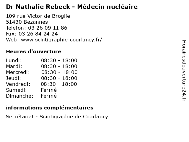 1 Dr François-Xavier Kipper - Médecins Nucléaire (Distance: nan km) 109 rue Victor de Broglie, 51430 Bezannes consultation, docteur, dr, françois, kipper, med, médecin, médecine, médecins, nucléaire, traitement, xavier 2 Dr Nelle Daragon - Médecin nucléaire (Distance: nan km) 109 rue Victor de Broglie, 51430 Bezannes consultation, daragon, docteur, dr, med, médecin, médecine, nelle, nucléaire, traitement 3 Dr Ioannis Tsechelidis - Médecin nucléaire - secrétariat (Distance: 1,78 km) 1 Rue du Général Koenig, 51100 Reims dr, ioannis, médecin, médecins, médicaments, nucléaire, santé, secrétariat, spécialiste, tsechelidis 4 Pr Nathalie Bednarek Weirauch - Pediatre (Distance: 1,86 km) - rue du General Koenig, 51090 Reims bednarek, consultation, docteur, med, médecin, médecine, nathalie, pediatre, pr, traitement, weirauch 5 Chossenotte Nathalie (Distance: 2,77 km) 2 Rue Charles Marq, 51100 Reims chossenotte, nathalie, restaurants 6 Dr Nathalie Visy - Anatomo-cyto-pathologiste (Distance: 3,22 km) 38 bis rue de Courlancy, 51100 Reims anatomo, consultation, cyto, docteur, dr, med, médecin, médecine, nathalie, pathologiste, traitement, visy |