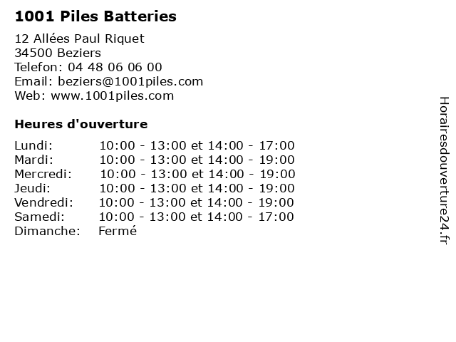 | Mercredi | 10:00-13:00 et 14:00-19:00 |