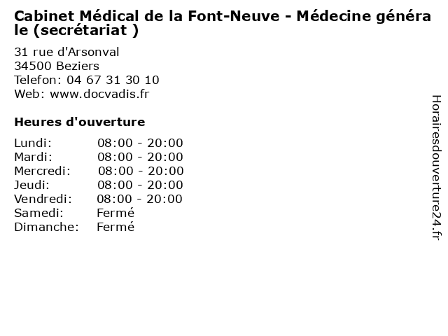 Termes de recherche pour Cabinet Médical de la Font-Neuve - Médecine générale (secrétariat ):la, de, cabinet, générale, medecine, santé, neuve, medical, font, secretariat, docteur, consultation |