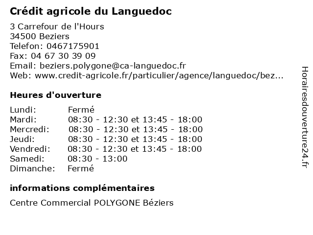 | Mercredi | 08:30-12:30 et 13:45-18:00 |