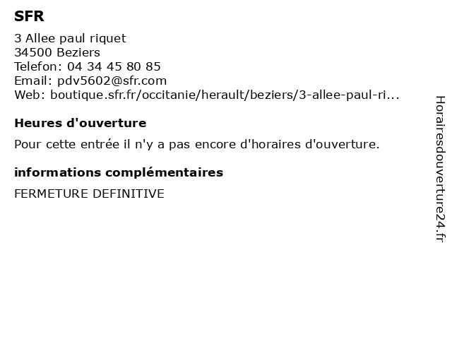 1 SFR (Distance: 0,00 km) 3 Allées Paul Riquet, 34500 Beziers abonnements de téléphonie mobile ou fixe fixe ou carte prépayée, accès internet haut débit ou la fibre optique ainsi que des abonnements à des bouquets de chaînes de télévision ., sfr, téléphones mobiles 2 SFR (Distance: 0,52 km) - Avenue Du Président Wilson, 34500 Beziers abonnements de téléphonie mobile ou fixe fixe ou carte prépayée, accès internet haut débit ou la fibre optique ainsi que des abonnements à des bouquets de chaînes de télévision ., sfr, téléphones mobiles 3 SFR (Distance: 1,15 km) 3 Carrefour Hours, 34500 Beziers cafe, chaussures, enfants, homme, mode femme, restaurant, sfr 4 Sfr (Distance: 2,16 km) 4 Avenue de la Voie Domitienne, 34500 Béziers internet, mobiles, sfr, téléphonie 5 SFR (Distance: 2,55 km) . De Montımaran, 34500 Beziers beaute, cafe, chaussures, enfants, lingerie, mode femmes, mode hommes, restaurant, royaume, sfr, sport 6 |