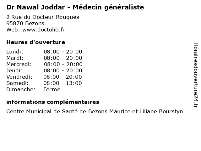 1 Dr Nawal Meskine - Radiologue (Distance: 3,53 km) 67 Avenue Maurice Berteaux, 78500 Sartrouville consultation, docteur, dr, med, meskine, médecin, nawal, radiologue, traitement 2 Dr Nawal Meskine - Radiologue (Distance: 9,76 km) 3 Rue du Docteur Henri Laredo, 95170 Deuil-la-Barre consultation, docteur, dr, med, meskine, médecin, nawal, radiologue, traitement 3 Dr Nawal Salhi - Médecin généraliste (Distance: 10,39 km) 104 boulevard Raymond Poincaré, 92380 Garches consultation, docteur, dr, généraliste, med, médecin, médecine, nawal, salhi, traitement 4 Dr Nawal Mouri - Cardiologue (Distance: 12,43 km) 12 Rue du Faubourg Saint-Martin, 75010 Paris cardiologue, dr, mouri, médecin, médecine, médical, nawal, pharmaceutique, traitement 5 Dr Nawal Mouri - Cardiologue (Distance: 13,18 km) 4 Rue de Thionville, 75019 Paris cardiologue, consultation, docteur, dr, med, mouri, médecin, médecine, nawal, secrétariat, traitement 6 Nawal Tamim - Naturopathe (Distance: 14,37 km) 7 Avenue Jean Lolive, 93500 Pantin medecin, naturopathe, nawal, plante, sante, tamim |