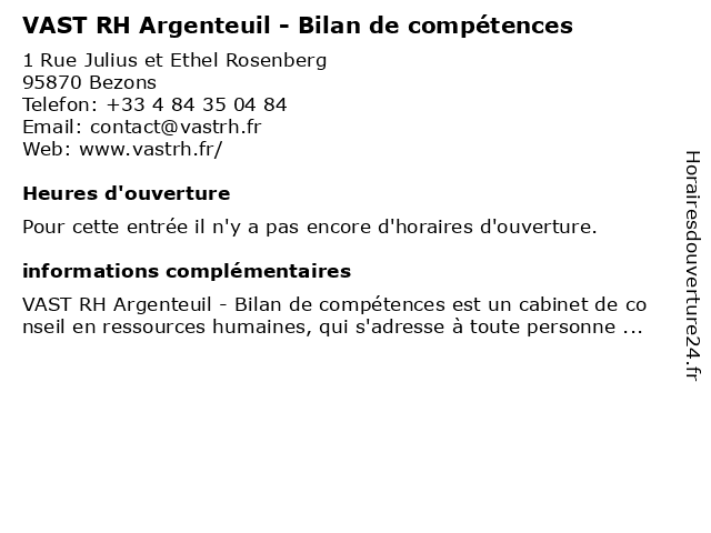 | Appeler VAST RH Argenteuil - Bilan de compétences | |